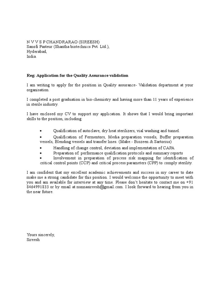 Quality Control Chemist Cover Letter : Cover Letter For Lab Chemist September 2021 : Everything i need is in the resume." trying to sell yourself in a cover letter usually leads to a long letter that an em.. Writing a cover letter is essential when applying for jobs. Explore quality control to make sure you have your bases covered. How to write a resume & cover letter for a quality control inspector. This is the perfect way to express how your specific skills are relevant to the open position. When applying for a position as an r.n.